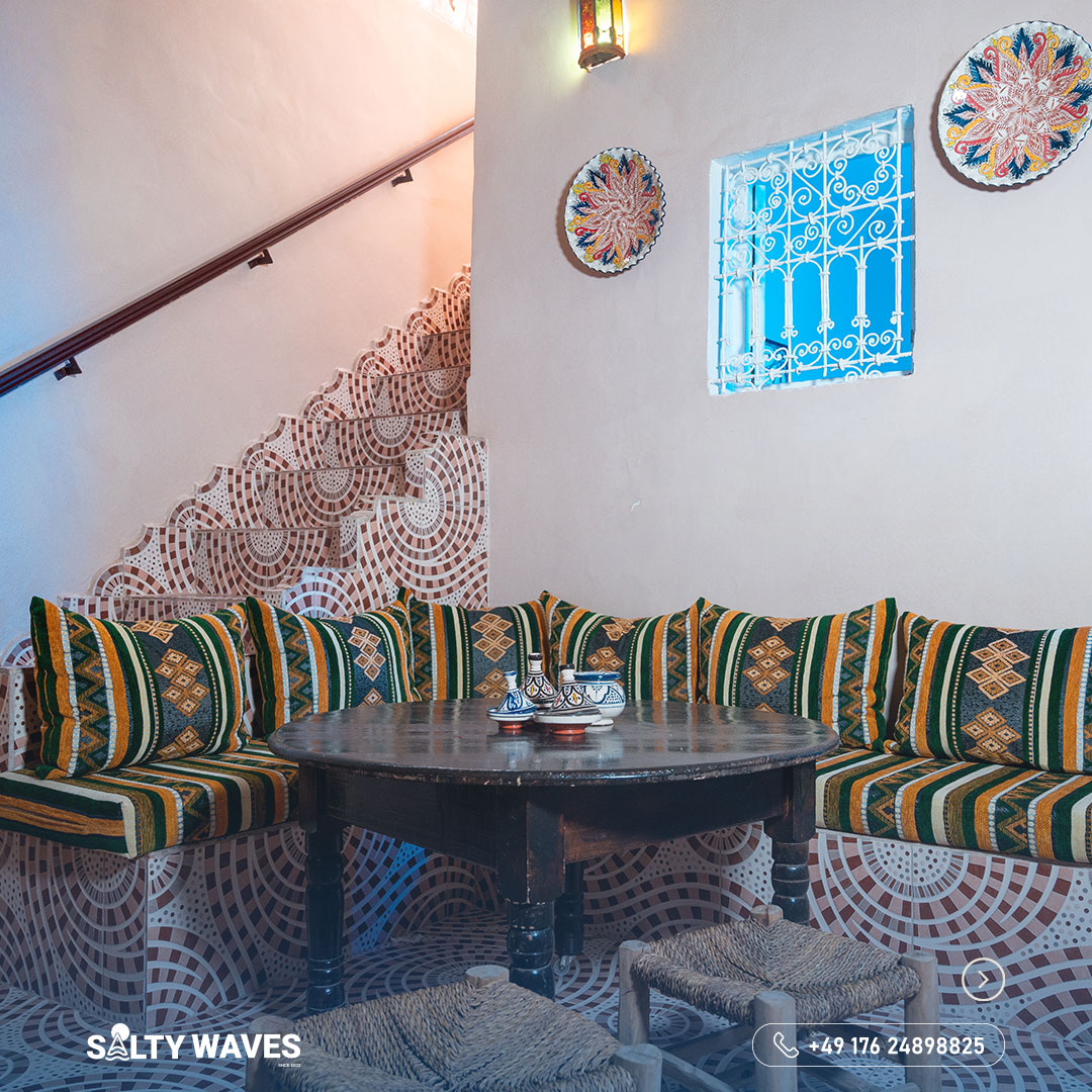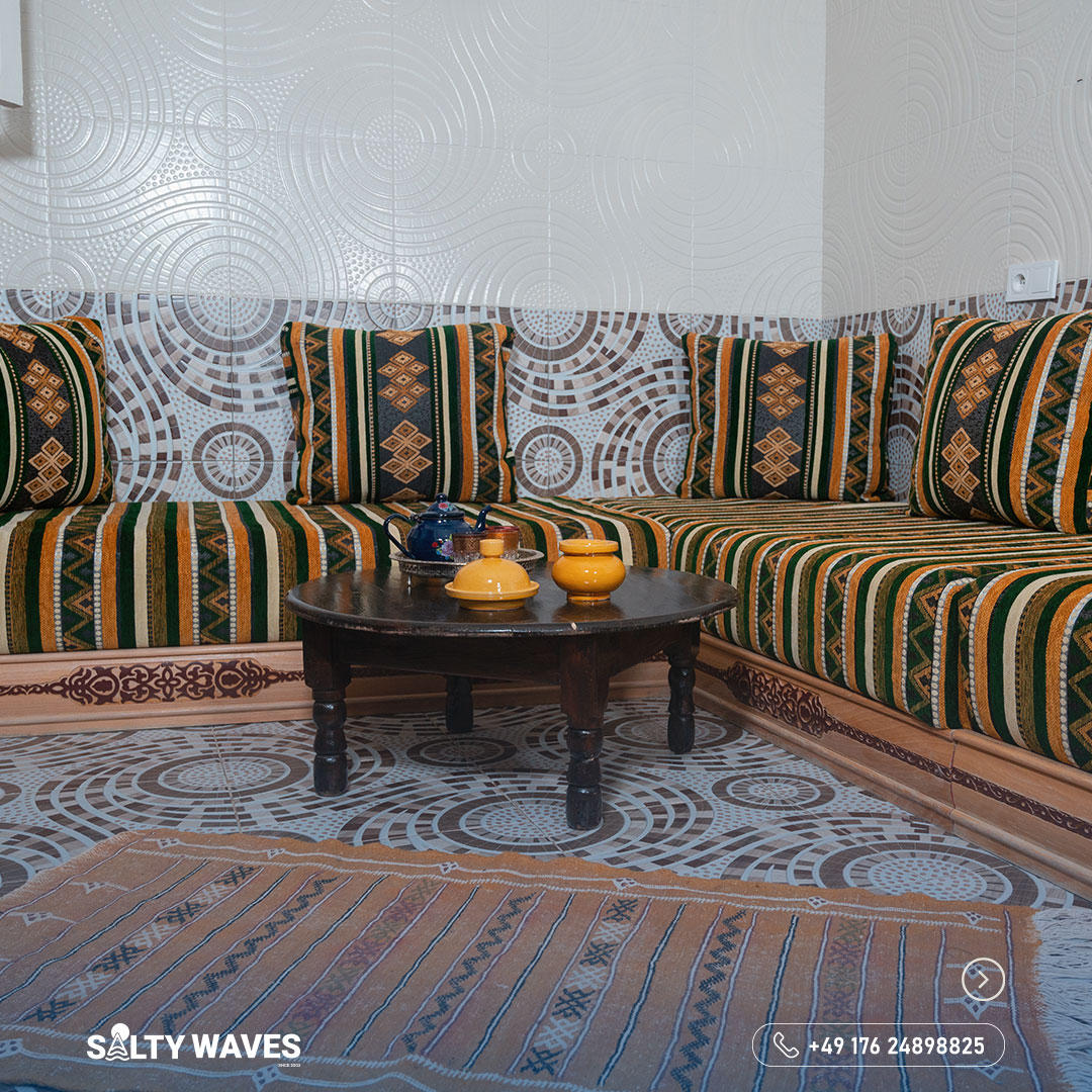 Our house is a riad with a beautiful courtyard and a magnificent terrace with barbecue. The top terrace offers three different seating options and the bottom courtyard also offers a traditional seating group. On the ground floor there are the following rooms: A kitchen , a bedroom with a double bed for 2 persons , a living room with sleeping facilities for 2 persons, a bathroom with shower and the magnificent courtyard. In the middle of the house, a beautiful tree protrudes all the way up. The house is located a few steps to the sea and to the beautiful cafés and restaurants directly on the sea. Taghazout is a fishing village, with several surfer pointe. We also offer yoga and surfing courses. Taghazout is very popular with surfers from all over the world. Of course, Taghazout is also known for the great weather all year round. Young and old meet here in Taghazout. On request, we also offer an airport shuttle from and to the airport. The nearest airport is about 40 kilometers from the house. Welcome........... Merhaba