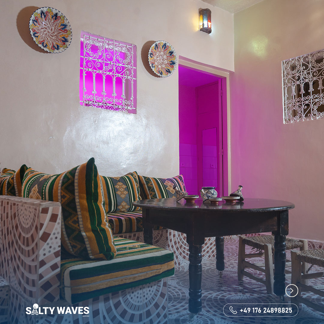Our house is a riad with a beautiful courtyard and a magnificent terrace with barbecue. The terrace upstairs offers three different seating areas and downstairs courtyard additionally a traditional seating area. The following rooms are located on the ground floor: A kitchen , a bedroom with a double bed for 2 people , a living room with sleeping facilities for 2 people as well as a bathroom with shower and the magnificent courtyard.