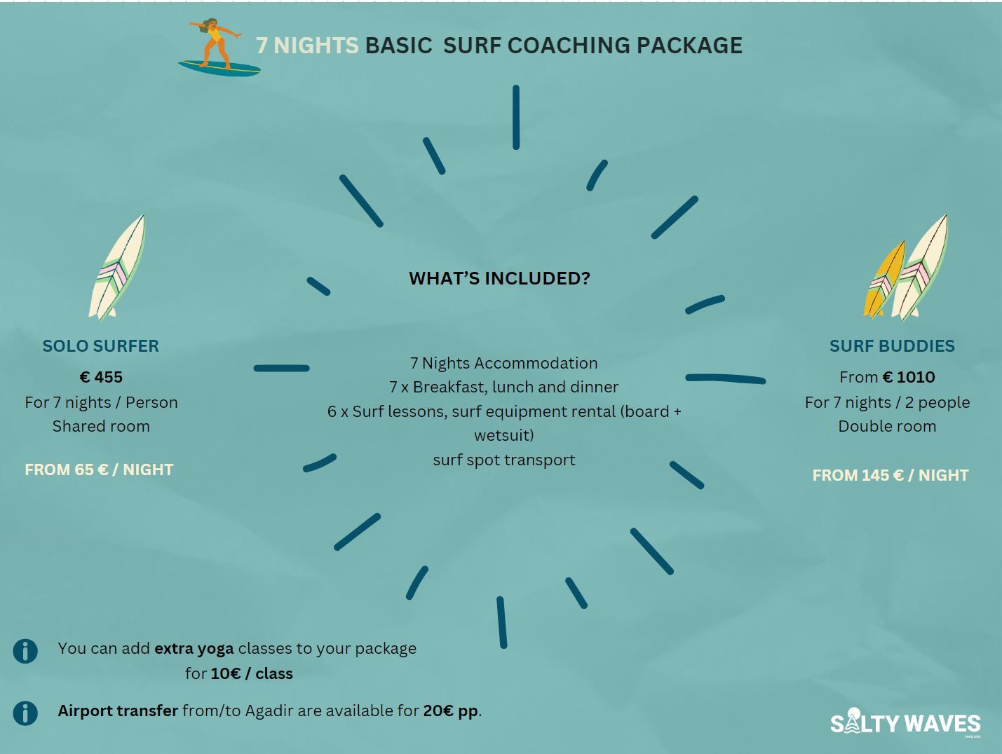 7 NIGHTS Basic SURF COACHING PACKAGE - €455