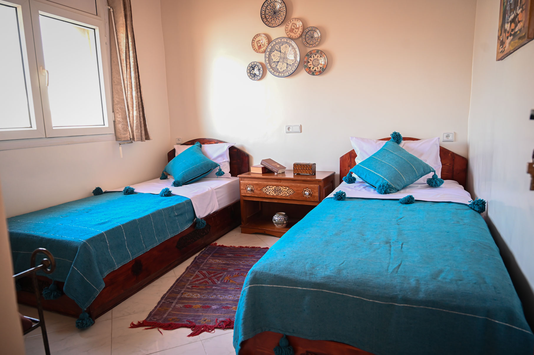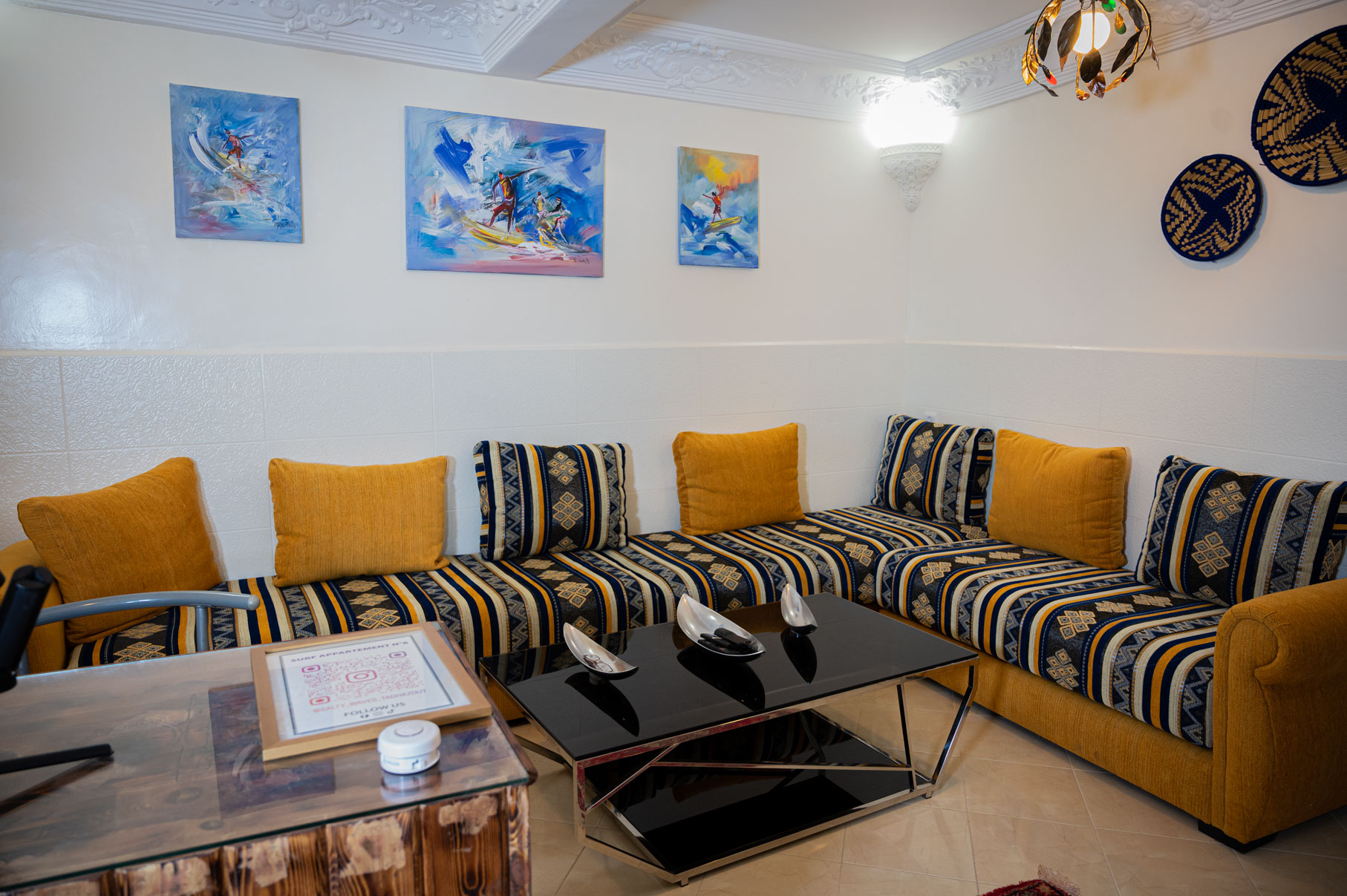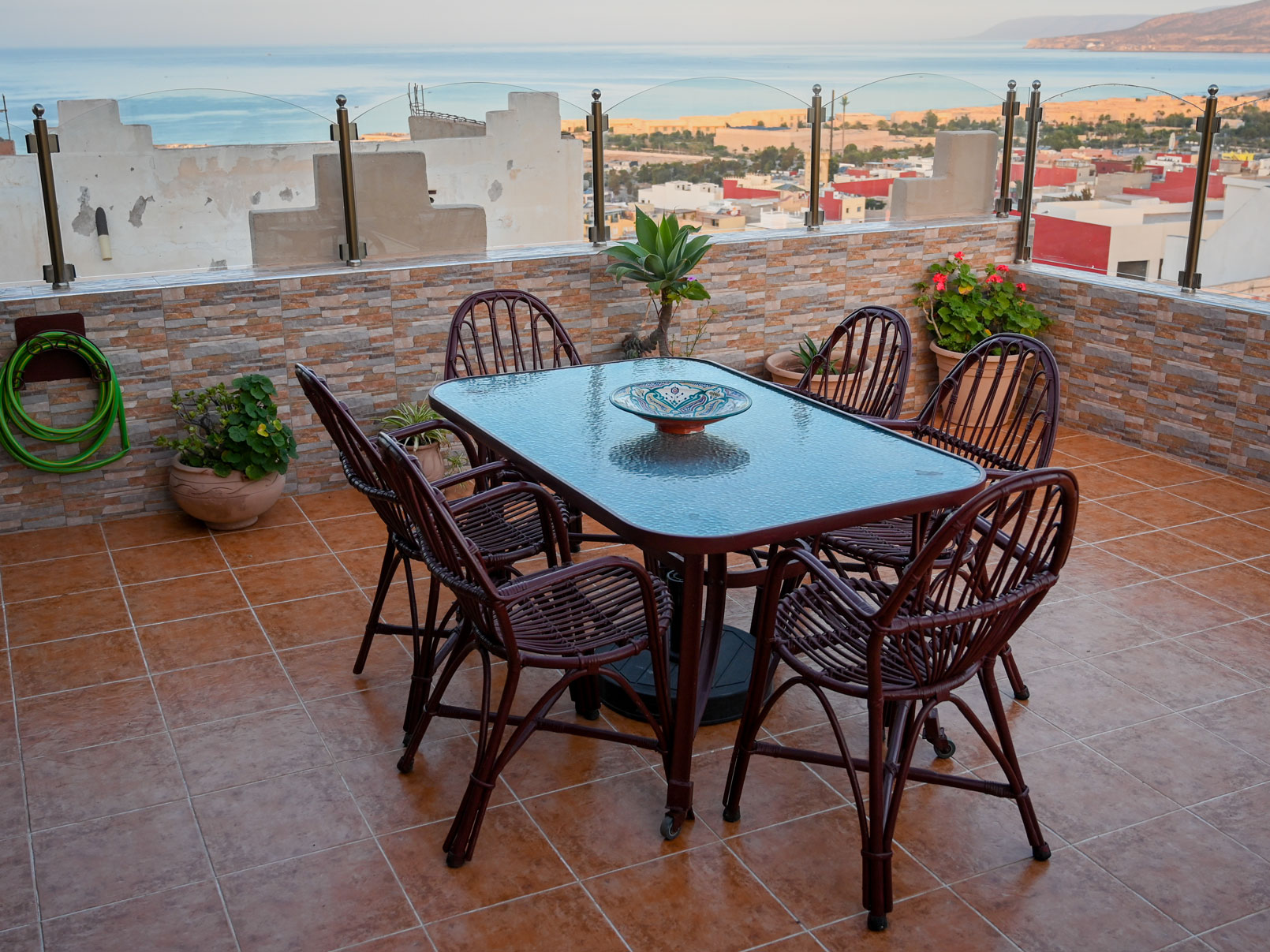 Welcome to our surf hostel in Tamraght, just 700 meters from the enchanting Imourane beach! Our beautifully decorated house spans three floors and two rooftop terraces with breathtaking views of the sea and mountains.